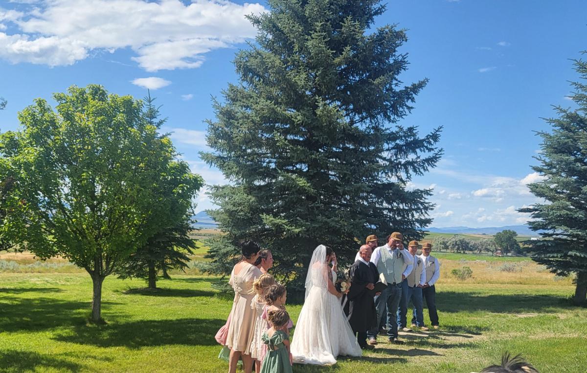 The ceremony started at 4:00pm and was presided over by retired Justice of the Peace Gary Olsen and was held in the park area in front of the Canton Church. The “bride” and attendants were beautiful and the “groom” and groomsmen were all handsome!