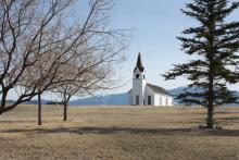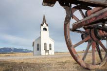 Wagon in front of the church