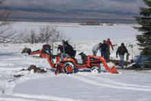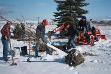 Planting trees in the park during winter