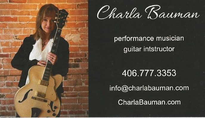Charla Bauman is a 5th generation Montana Musician.  As a singer/songwriter she offers acoustic originals that always “touch a chord” and covers popular hits that span the decades. Her favorite genres include Classic Country, Pop, Folk Rock, Blues and Jazz.
